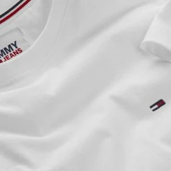 T-shirt fra Tommy Jeans i 100% bomuld med mærkets karakteristiske logo syet på fronten. Derudover er T-shirten helt klassisk i modellen med korte ærmer, rib i halsudskæringen samt en løs pasform.